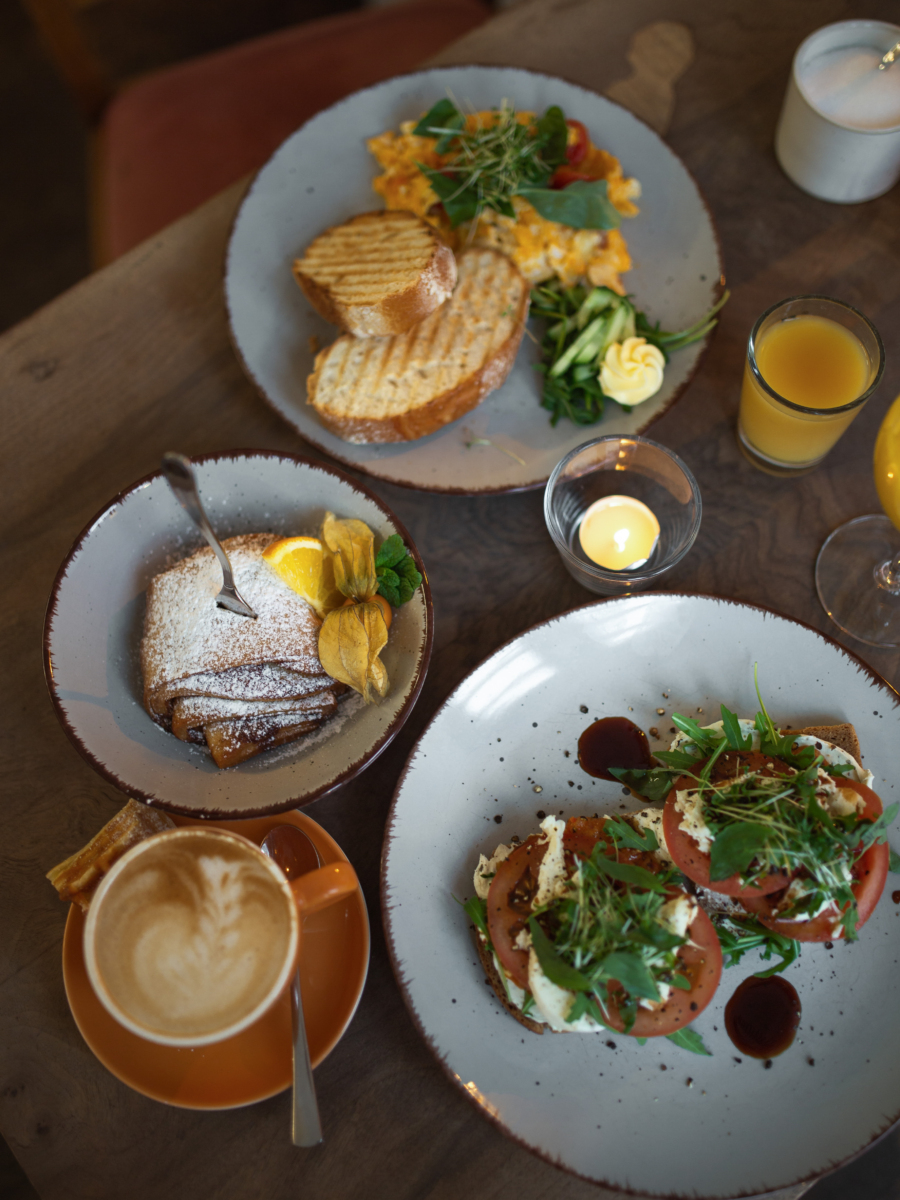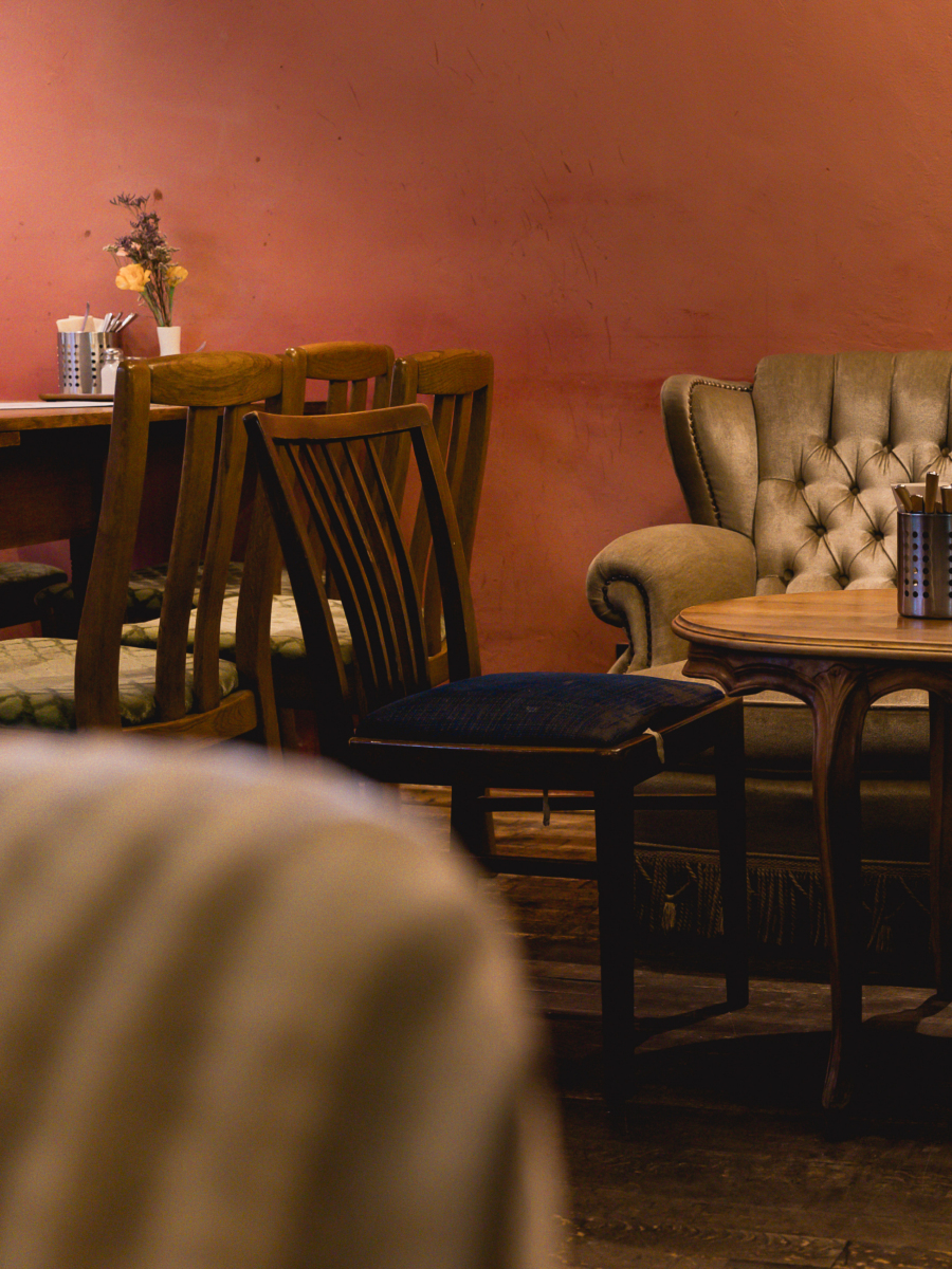 toben, servieren wir hausgebackene Kuchen, Waffeln nach Oma Lindes Rezept, kreative Frühstücksideen, Stullen, Panini und saisonale Gerichte. Vegetarisch und vegan gehören seit Tag eins selbstverständlich dazu. Wir möchten ein Ort sein, der euch sieht, Raum
